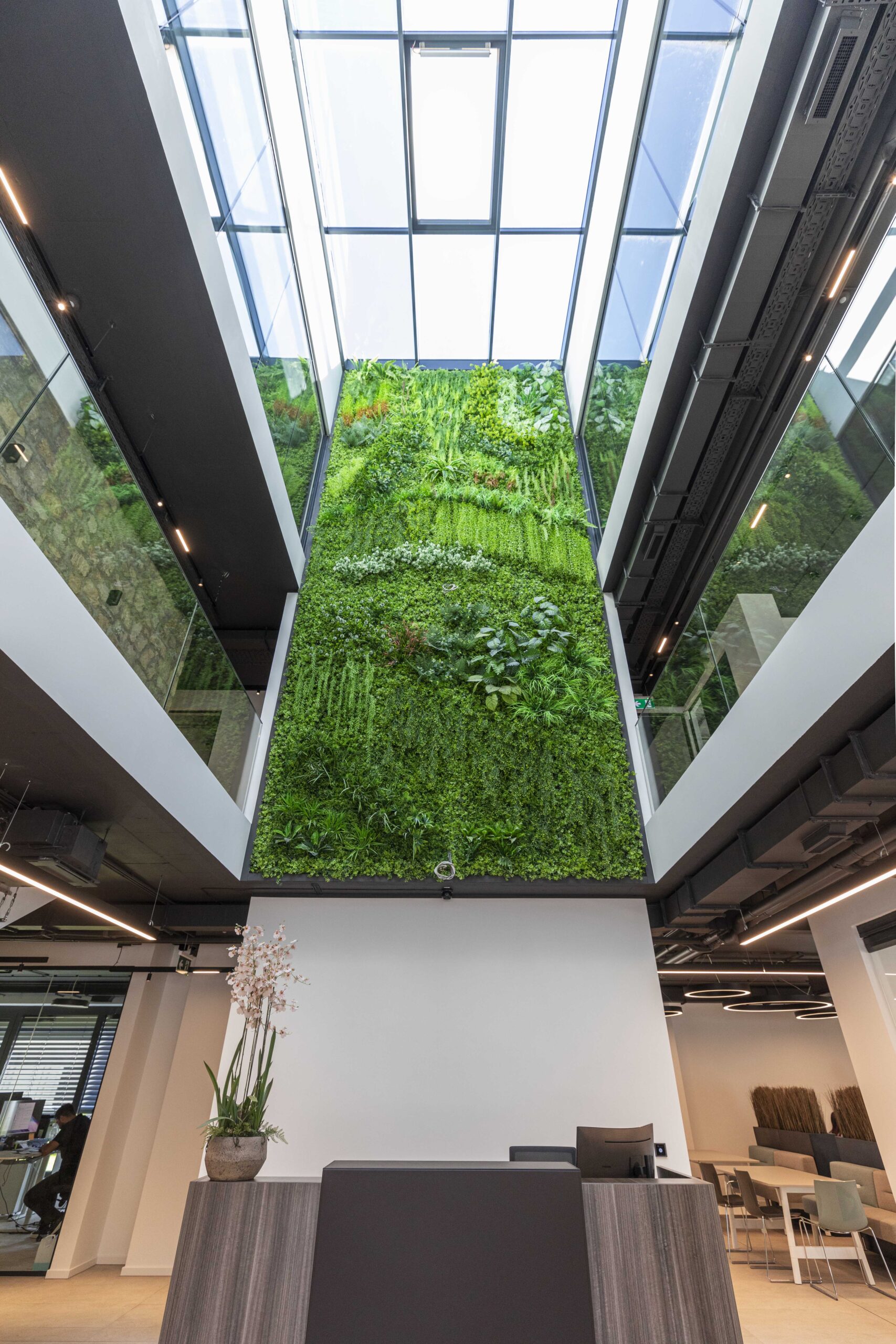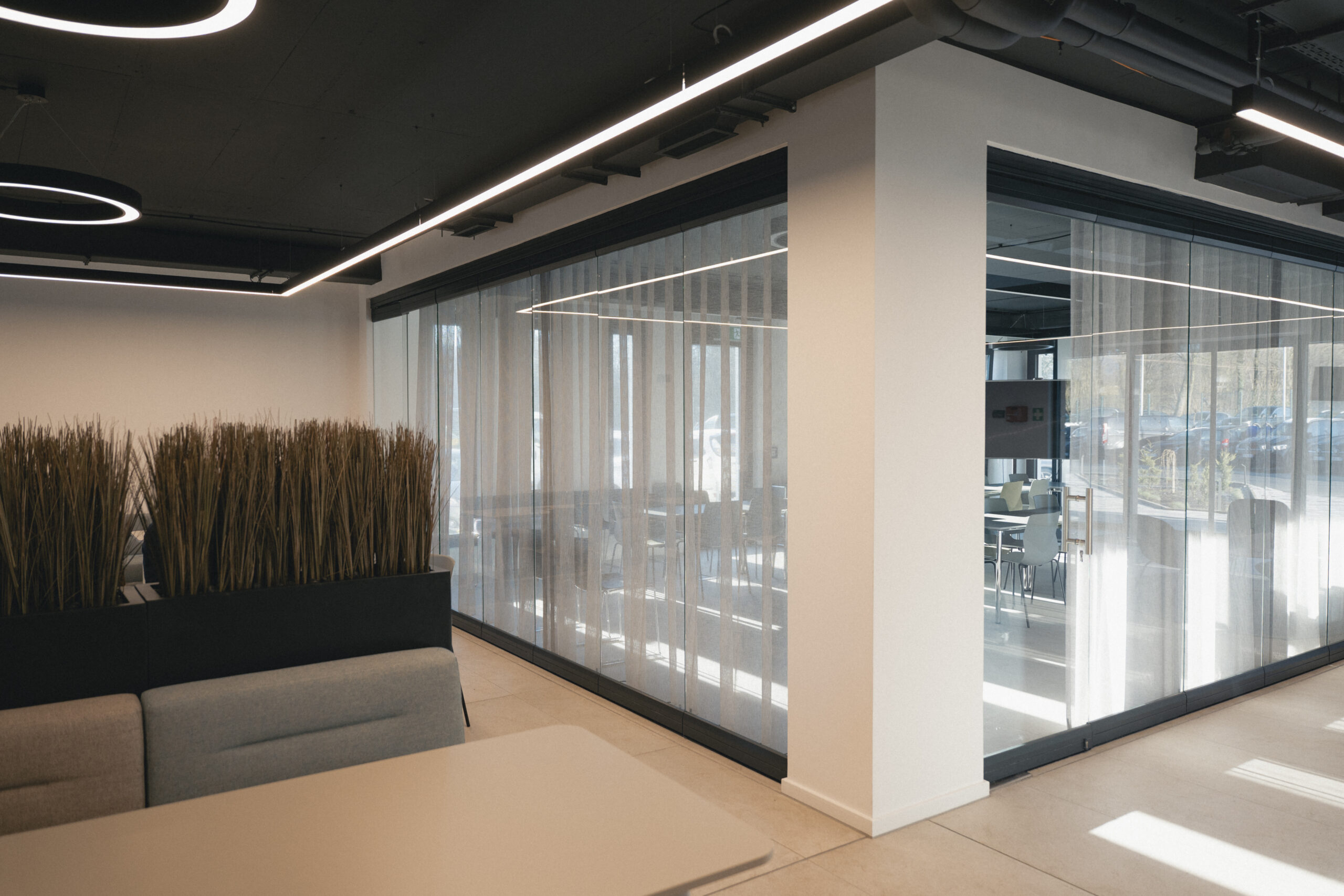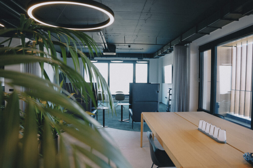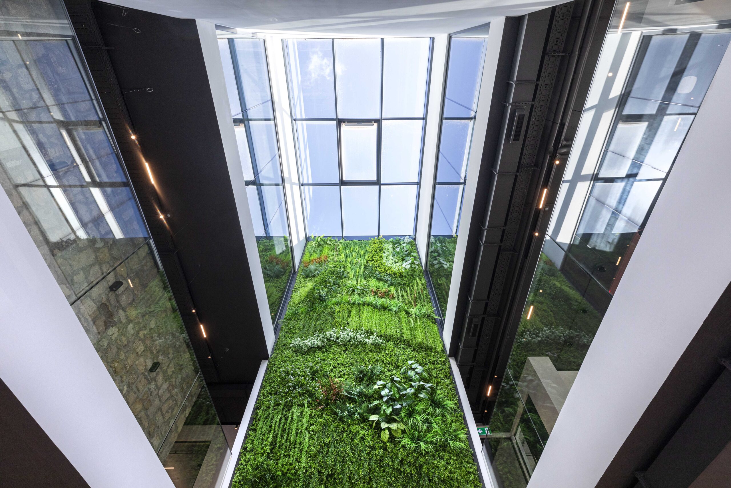 Trospratna zgrada nudi oko 2.400 m² kancelarijskog prostora, dopunjeno prostranim skladištem površine 3.000 m². Kancelarije su raspoređene u spoljnim krugovima zgrade, dok centralni blok uključuje servisne prostore poput otvorenih kuhinja, staklenih sala za sastanke i toaleta. Glavna atrakcija zgrade je veliki atrijum s dvoetažnim zelenim zidom, koji stvara inspirativnu atmosferu na ulazu. U ovom prostoru nalaze se velike konferencijske sale, dok coworking zona na prvom spratu pruža dodatni prostor za timski rad.